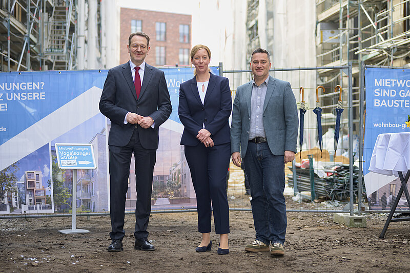 Die Wohnbau GmbH und DIE WOHNKOMPANIE NRW haben gestern das Richtfest für 29 öffentlich geförderte Wohneinheiten des Projekts „Die WOHNLiebe - Neue Wege für Wohnen in Köln-Ehrenfeld“ gefeiert. Zwischen der Vogelsanger Straße und der Straße Am Alten Güterbahnhof entsteht ein neues Wohnquartier mit insgesamt 109 Wohneinheiten.